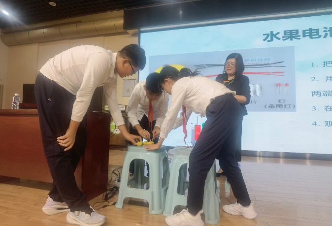 同时邀请到6位专家服务团分别到鄂尔多斯市多所中小学开展新能源与储能科普讲座和科普活动,加强对当地青少年的现代文明教育、科普教育,引导他们积极融入现代文明生活。西藏大学王世锋教授作了“来自太阳的礼物---光”的科普报告,河南科技大学尹艳红教授作了“电从哪里来?”的科普报告,华中科技大学黄云辉教授作了“锂离子电池的前世今生”科普报告,广西师范大学李庆余教授作了“电池动力新能源船舶”的科普报告,重庆大学雷惊雷教授作了“生活中的界面现象”科普报告,内蒙古科技大学刘媛媛教授作了“探索元素的魔法:从元素周期表到水果电池奇妙之旅”科普报告。
